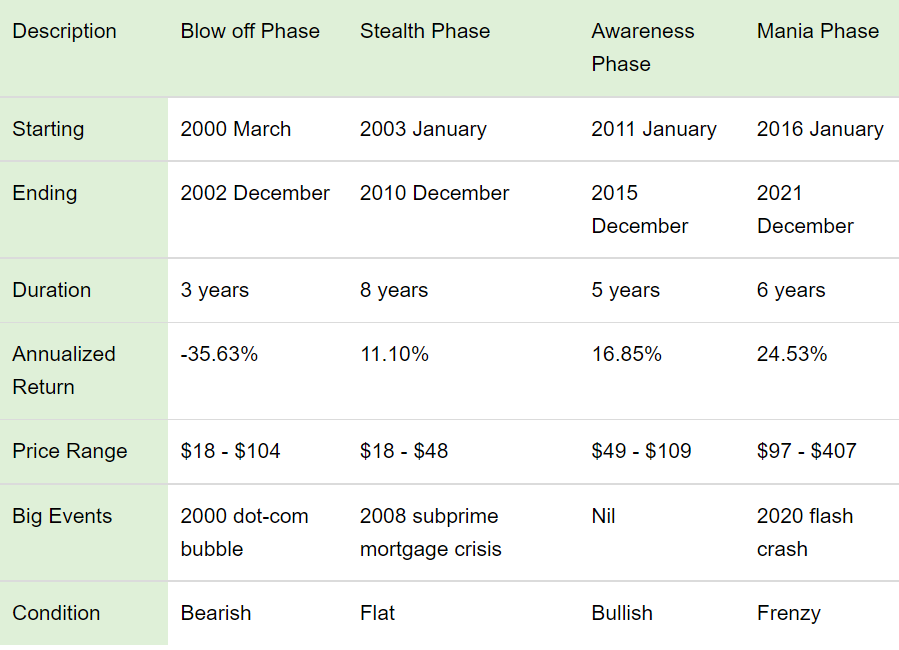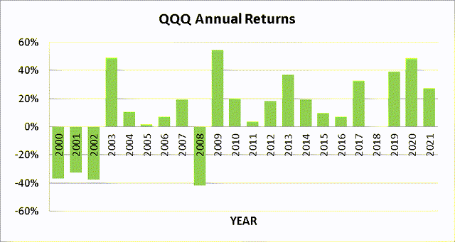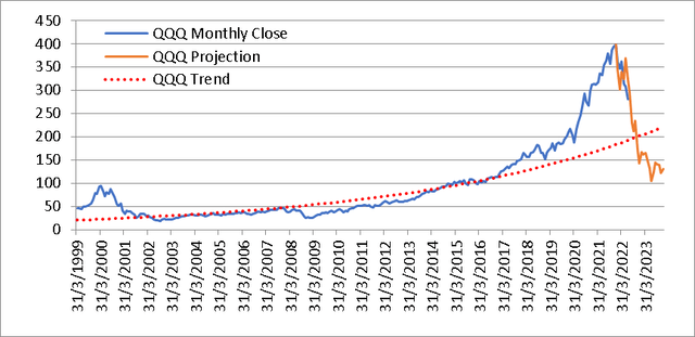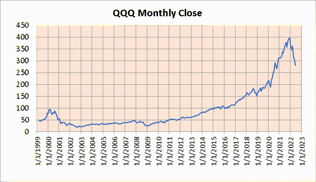 Investors were impressed by the rapid growth of QQQ in recent years. Its deplorable history before 2011 had all been forgotten. In fact, QQQ has climbed for 11 years since. Its long-awaited bust, supposed to have been triggered early in 2022, was only a recent phenomenon.