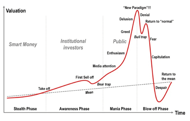 According to the author’s simulation, QQQ can reach the floor somewhere around $105 by June 2023. The market may then slip into another stealth phase for some years until investors’ interests come back.