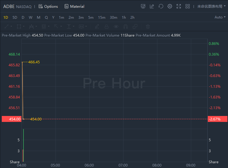 Adobe fell nearly 3% in premarket trading after its disappointing financial results.