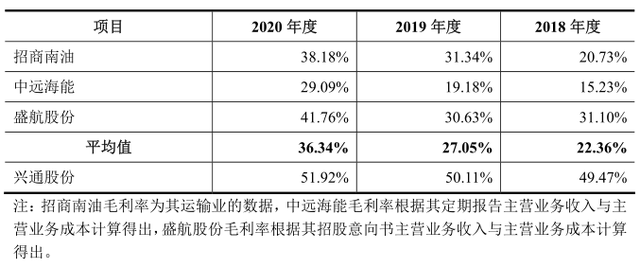 报告期内,公司主营业务毛利分别为 1.33亿元、1.46亿元、2.01亿元。公司建造的船舶“兴通56”在2019年10月投入使用,以及公司购置的船舶“兴通 789”在2020年8月投入使用,上述船舶的投入使用在2020年产生较多的毛利。