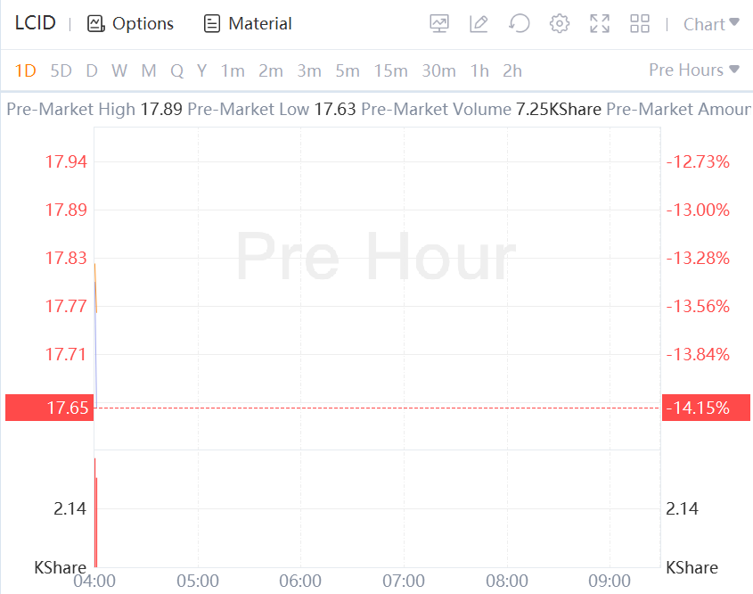 Lucid Motors fell 14% in premarket trading after the electric vehicle maker slashed its full-year production target and reported mixed second-quarter results as revenue fell short of estimates.