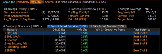 Bank of America lowered its price target to $160 from $185, it views the slowdown in services and relatively lackluster iPhone lead times as indicators that consumer spending will slow, and risks to that outperformance over the next year include a weaker iPhone 14 cycle that points to softness in consumer spending, a weaker near-term services trajectory where App Store and licensing via payments from Google can decelerate, and pressure from a stronger dollar.