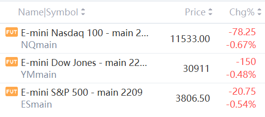 Futures for the Dow Jones Industrial Average retreated 150 points, or 0.48%, after the index ended 321 points higher last Friday at 31,097. S&P 500 futures signaled a start 0.54% into the red with the tech-stock-heavy Nasdaq poised to fall 0.67%.