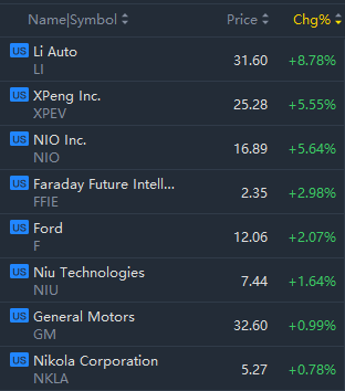 EV stocks boosted in morning trading, with XPeng and NIO jumping over 5%.