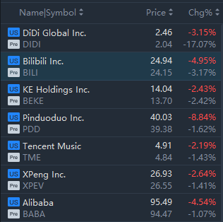 Hot Chinese ADRs slid in premarket trading, with Bilibili falling over 3% and Pinduoduo falling nearly 2%.