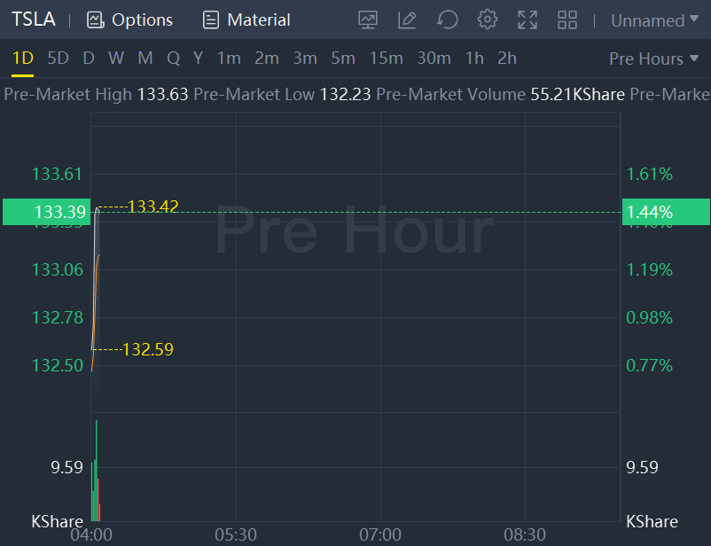 Tesla shares gained another 1% in premarket trading after surging 7.4% yesterday.