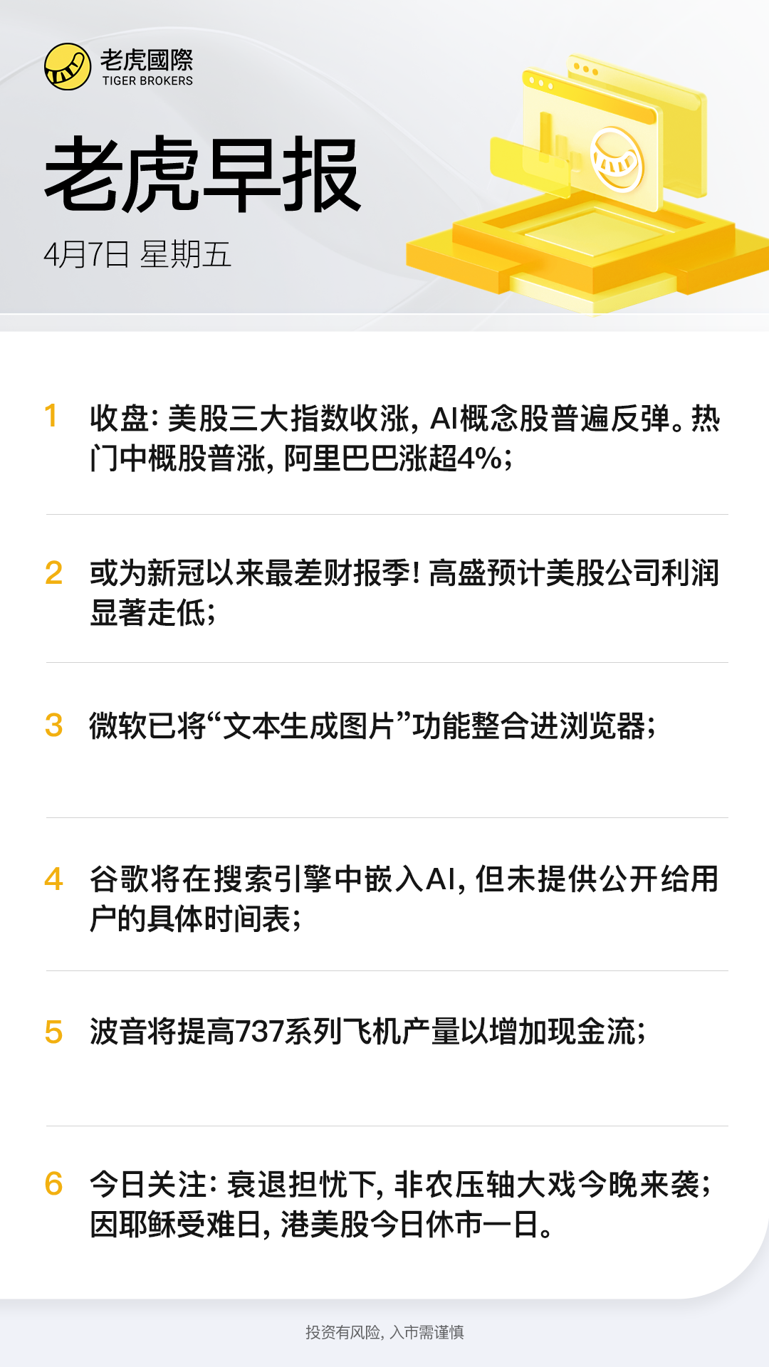1、美股三大指数齐收涨 市场聚焦非农就业报告