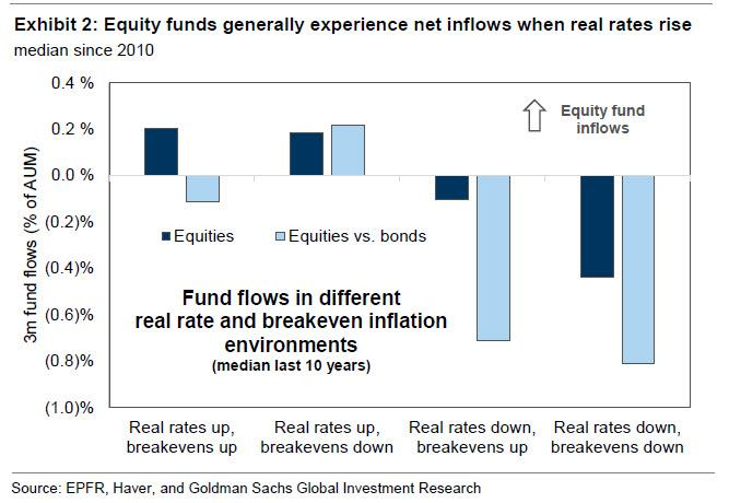 历史表明,股票基金通常会在实际利率下降时经历资金流入。在过去的十年中,股票基金流入的最有利背景是实际利率和通胀率都在上升。