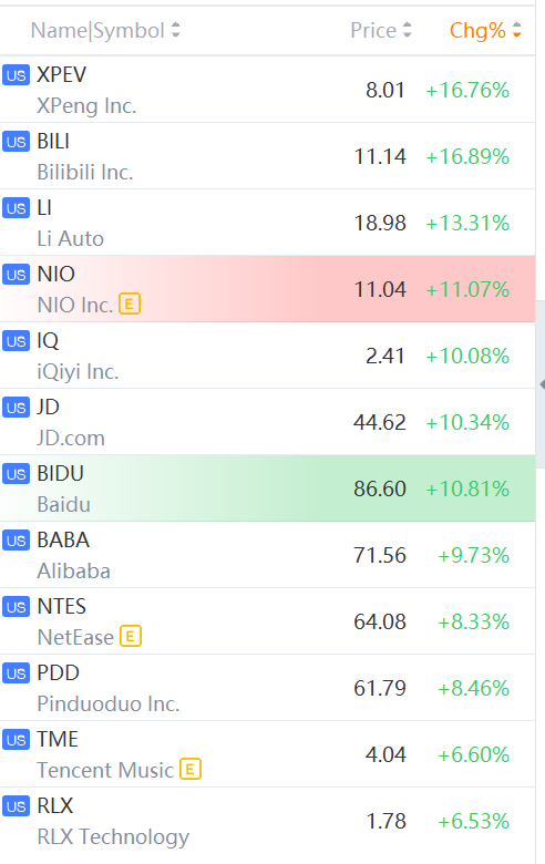 Hot Chinese ADRs rallied in morning trading. Xpeng rose 17%; Li Auto rose over 13%; Nio rose over 11%.