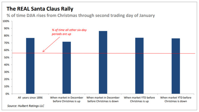 But the only December period in which the stock market has above-average odds of rising begins after Christmas.