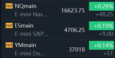 At 8:39 a.m. ET, Dow e-minis were up 51 points, or 0.14%, S&P 500 e-minis were up 9 points, or 0.19%, and Nasdaq 100 e-minis were up 48 points, or 0.29%.