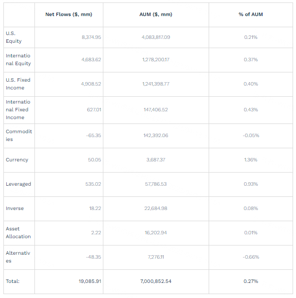 ETF Weekly Flows By Asset Class