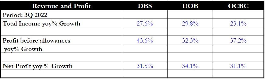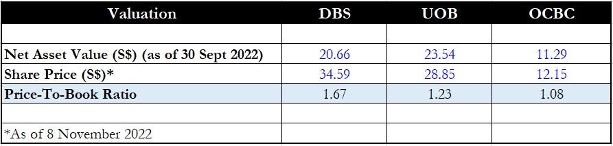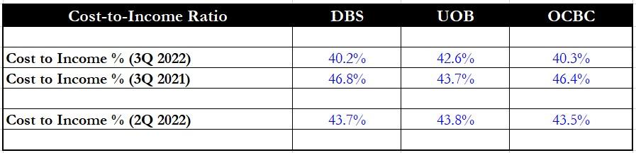 If we look back at 3Q2021 and 2Q2022, DBS was lagging behind OCBC slightly while UOB was the clear winner in 3Q2021 with the lowest cost-to-income ratio.