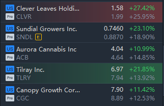 Cannabis stocks rallied in premarket trading, with Clever Leaves surging over 25% and Sundial Growers surging nearly 19%.The U.S. House of Representatives will vote on the Marijuana Opportunity, Reinvestment and Expungement (MORE) Act next week.