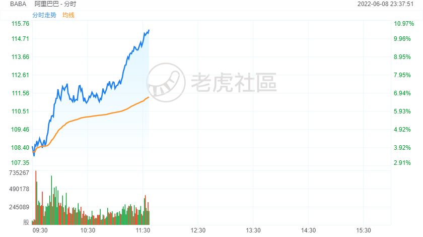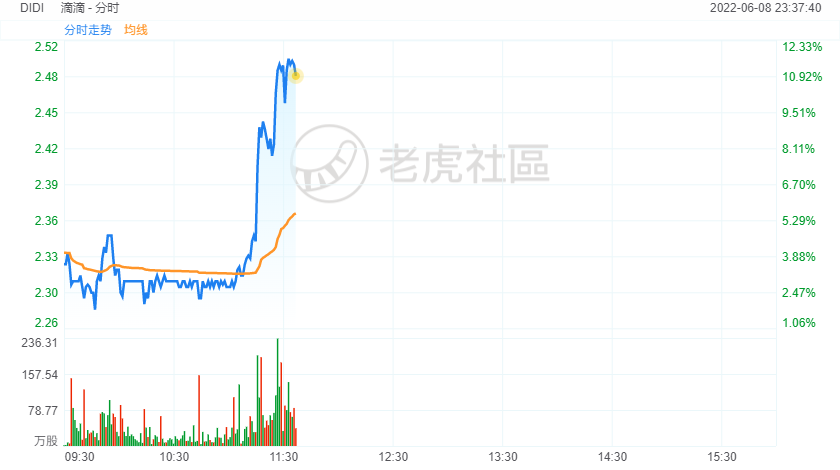 周三美股盘中,部分中概股持续拉升,截至发稿,滴滴、阿里巴巴涨超10%。