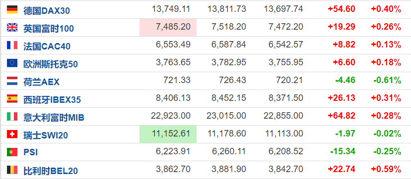 欧洲主要股指涨多跌少,截至发稿,德国DAX30指数涨0.40%,法国CAC40涨0.13%。原油