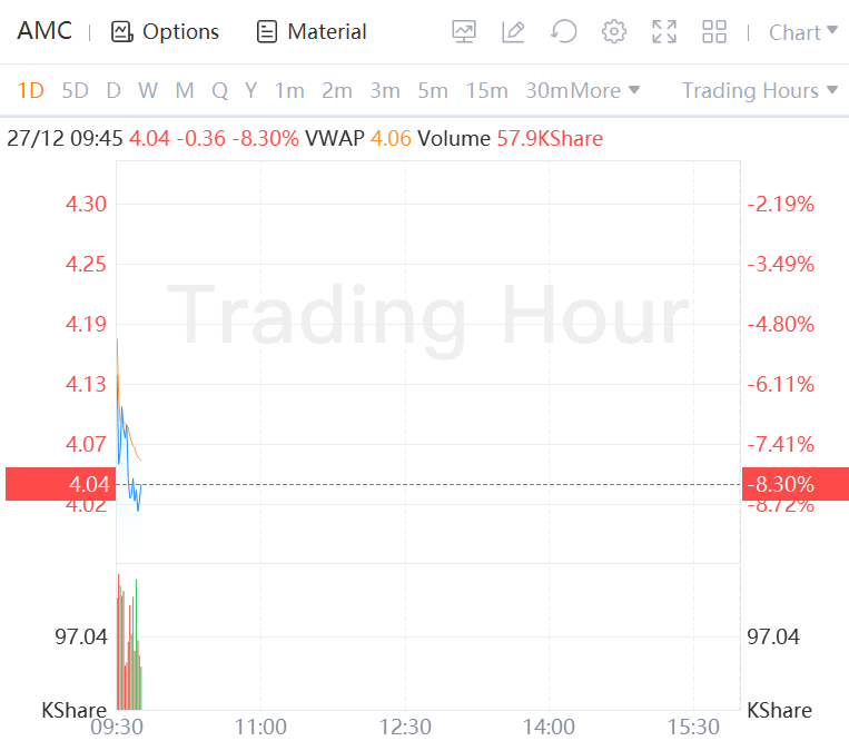AMC shares continued to drop over 8% while APE gained over 5% in morning trading as AMC to raise $110 million through preferred stock sale.