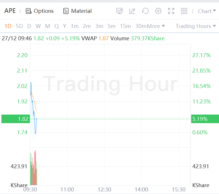 AMC in August announced APE as a special dividend for shareholders and a means to raise capital in the future. The company in the same month listed the stock in New York under the ticker 'APE'.