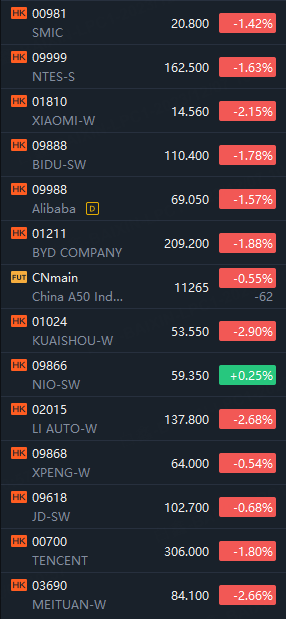 The Hang Seng Index retreated 1.76 per cent to 16,172.97 at 10:52am local time, heading for the lowest close since November last year. The Tech Index dropped 1.88 per cent.