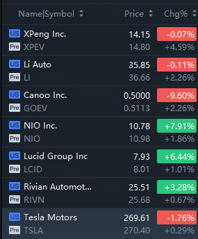 EV stocks cheered up in premarket trading; XPeng Inc. gained over 4% while Li Auto rose over 2%.