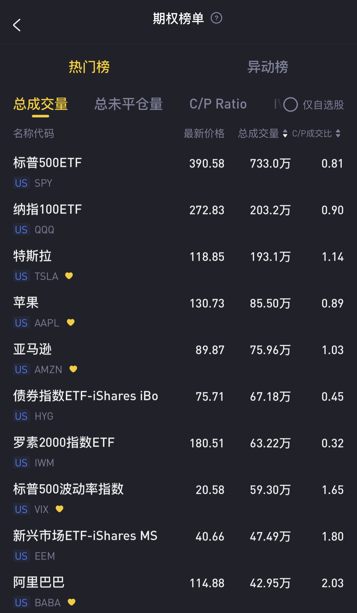 特斯拉、苹果、亚马逊期权成交量持续回落,分别成交193.1万张合约、85.5万张合约、75.96万张合约;