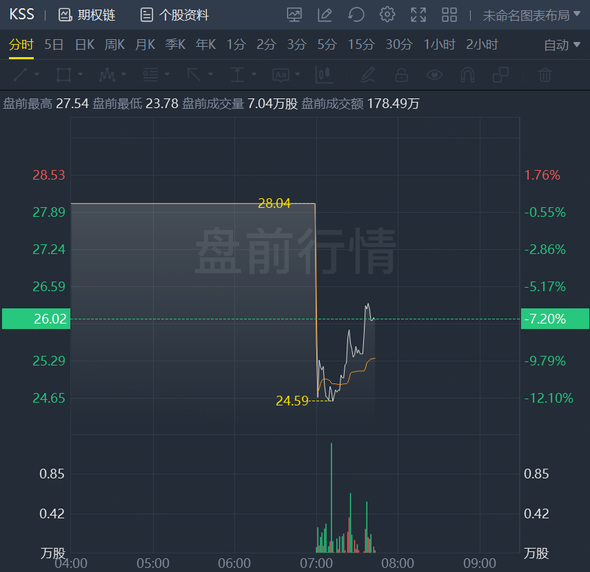 财报发布后,科尔士百货盘前一度跌逾12%,现收窄至7%。