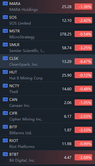 Crypto Shares slumped in morning trading with CleanSpark tumbling 8%.