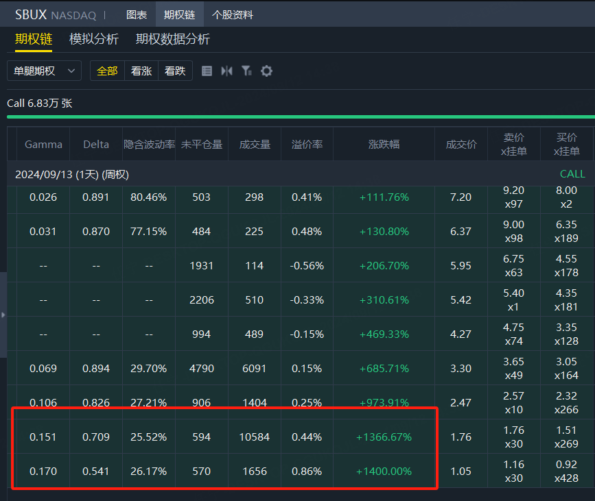 点击交易星巴克期权: $SBUX 20240913 90.0 CALL$