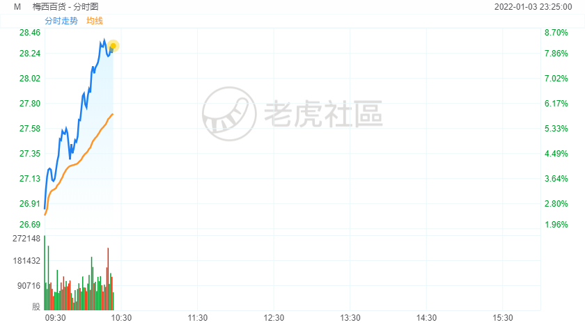1月3日,美股百货商店板块表现强势,梅西百货、狄乐百货涨超8%,诺德斯特龙涨超6%,科尔士百货涨超3%