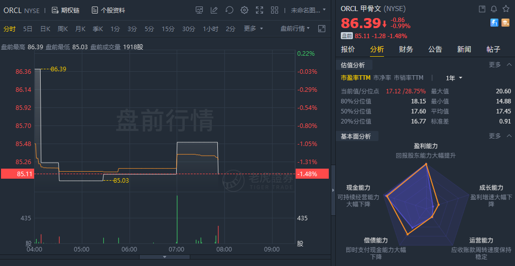 Price Action: ORCL shares traded lower by 1.48% at $85.11 in the premarket session on the last check Monday.