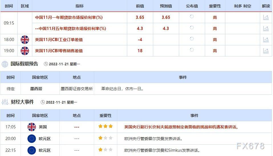 财经事件方面,美联储将公布11月货币涨超会议纪要,投资者可以从中了解美联储想法的更多细节。