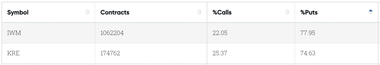 Special %Puts >70%: iShares Russell 2000 ETF; SPDR S&P Regional Banking ETF