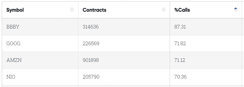 Special %Calls >70%: BBBY; GOOG; AMZN; NIO