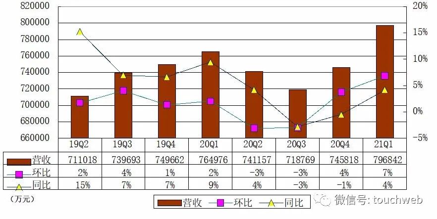 爱奇艺2021年第一季度营收约80亿元,较上年同期的76.5亿元增长4%,较上一季度的74.6亿元增长7%。