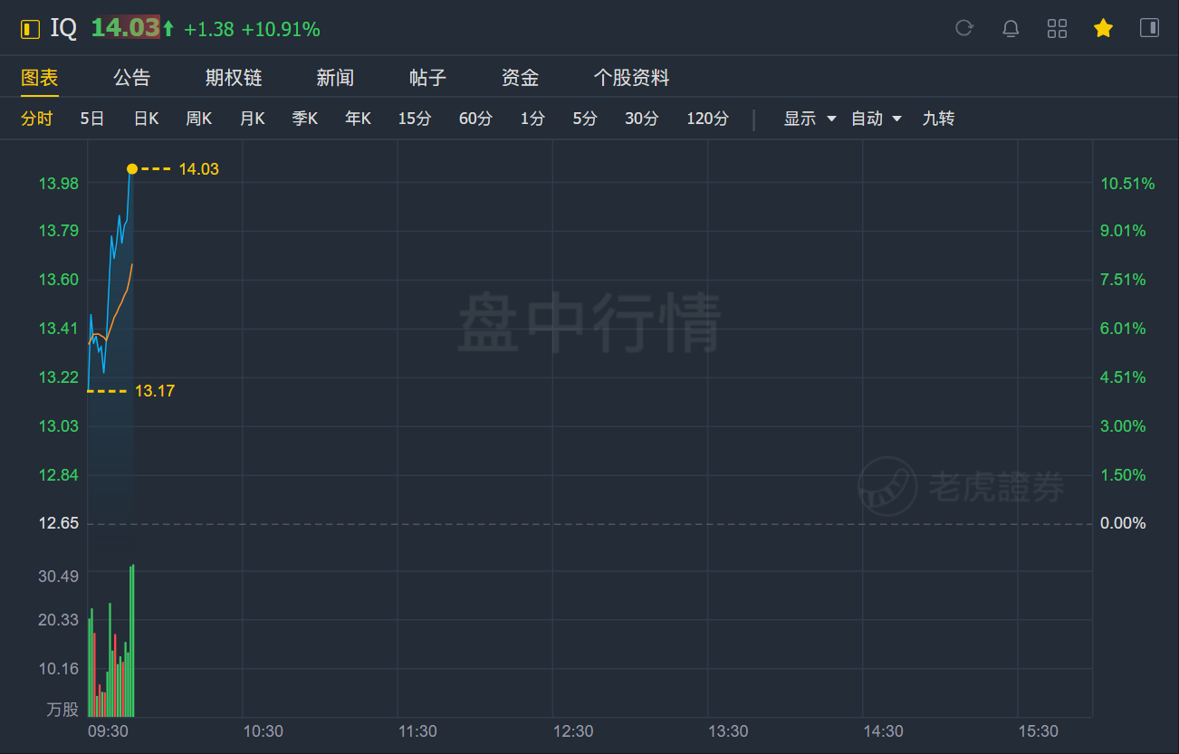5月18日,爱奇艺盘初涨幅扩大至11%,公司第一季度营收80亿元,订阅数净增360万。