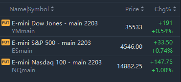 Nasdaq 100 Futures rose 1%, Dow Jones Futures rose 0.54%, S&P 500 Futures rose 0.74%.
