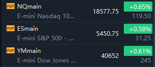 At 8:12 a.m. ET, Dow E-minis were up 245 points, or 0.61%, S&P 500 E-minis were up 31 points, or 0.58% and Nasdaq 100 E-minis were up 119.5 points, or 0.65%.