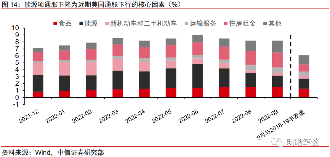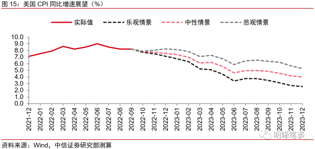 通胀大幅回落至少需等待明年,美联储或在明年一季度停止加息。我们认为年内存在美联储放缓加息的可能性,需高度关注11月议息会议美联储对于未来加息路径的表态。通胀大幅回落至少需等待明年,当前供给端压力有所缓解,但需求仍具有韧性,叠加能源价格未来下跌空间有限,年内通胀回落速度或偏慢。考虑到美国经济下行压力,若供应端没有新的冲击,美联储或于明年一季度停止加息。从泰勒规则以及实际利率角度来看,加息终点水平位于5%左右是合意的紧缩水平。