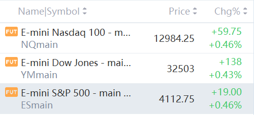 At 8:00 a.m. ET, Dow e-minis were up 138 points, or 0.43%, S&P 500 e-minis were up 19 points, or 0.46%, and Nasdaq 100 e-minis were up 59.75 points, or 0.46%.