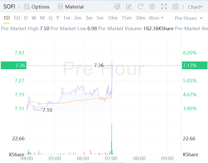 SoFi Technologies Inc. shares surged 7% in Monday’s premarket action after the financial-technology company posted a large revenue beat for the latest quarter and gave an upbeat outlook.