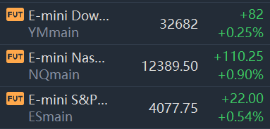 At 08:38 a.m. ET, Dow e-minis were up 82 points, or 0.25%, S&P 500 e-minis were up 22 points, or 0.54%, and Nasdaq 100 e-minis were up 110.25 points, or 0.9%.