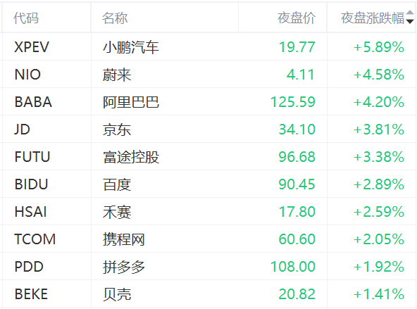 本周五(5月2日)美股夜盘时段,中概股全线大涨,截至发稿 三倍做多富时中国ETF-Direxion 涨超7%, 小鹏汽车 涨近6%, 阿里巴巴 、 蔚来 涨超4%
