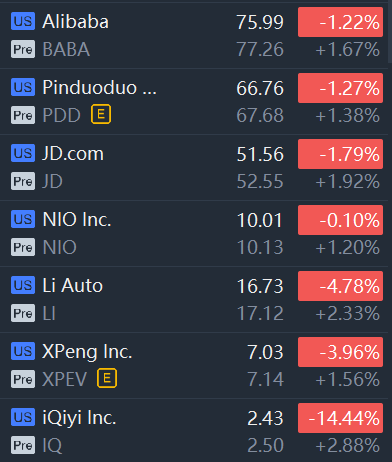 Hot chinese ADRs rallied in premarket trading. Alibaba and JD.com rose nearly 2%; NIO rose 1.2%; Li Auto and iQIYI rose more than 2%.