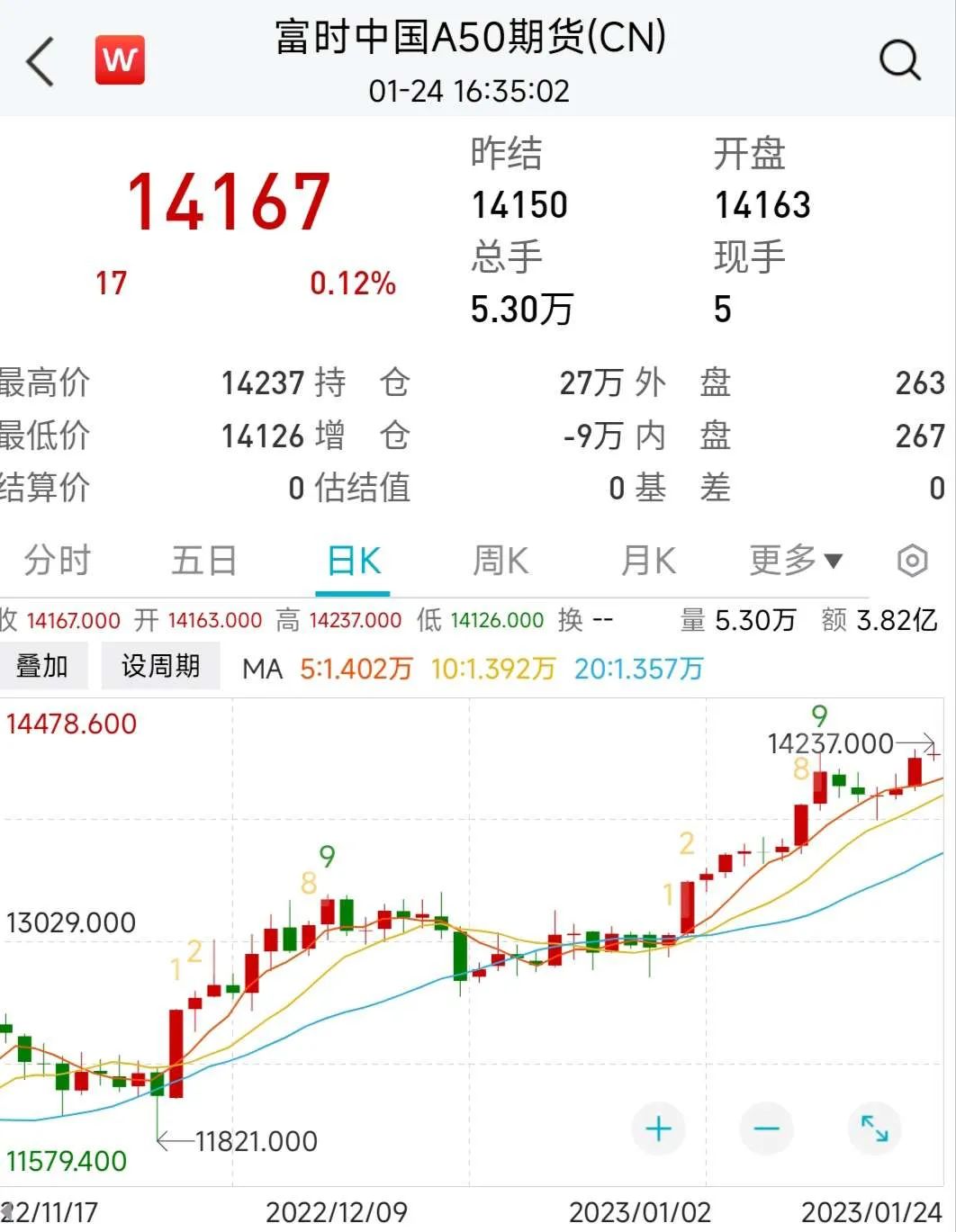 1月24日(大年初三),富时中国A50指数期货盘中再度明显拉升,合约盘中上摸至14172点,指数创兔年新高。