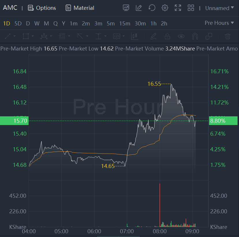 The stock $(AMC)$ ran up 8.8% in premarket trading, after already soaring 38.9% over the past three days. Just prior to the current win streak, the stock was trading at levels seen before the "meme"-stock rally that had kicked off a year ago.