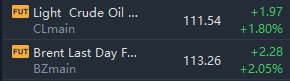 West Texas Intermediate crude rose $1.97%, to $111.54 a barrel.