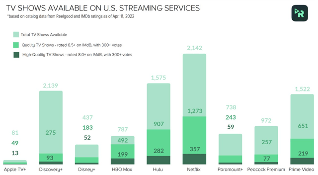 - Regardless of one's subjective opinion of Netflix content quality, it has been enough to turn the streamer into the market leader -- streaming charts and award nominations should do some of the talking.