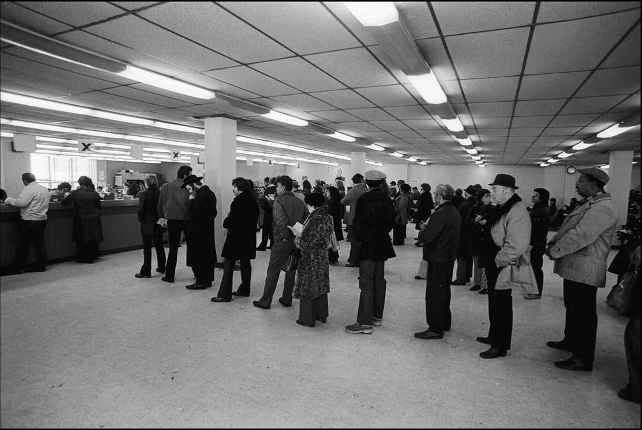 An unemployment line in Brooklyn, N.Y., 1974.
