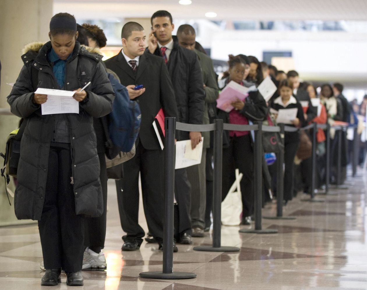 People lined up at the Big Apple Job Fair in New York, 2009.