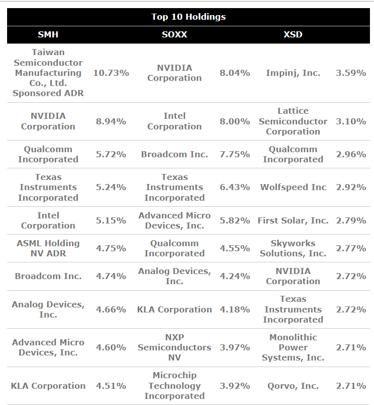 XSD is a perfectly acceptable fund, though slightly less liquid than SMH or SOXX, and its small cap exposure could appeal to certain investors, such as tactical traders or those looking to exploit the growth opportunities in a mature industry.